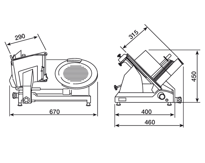 Affettatrice a gravità costruita in lega di alluminio trattata con ossidazione anodica. Affilatoio incorporato.Trasmissione ad ingranaggi.Per il dettaglio, i supermercati e la ristorazione collettiva. Comandi con dispositivo N.V.R.